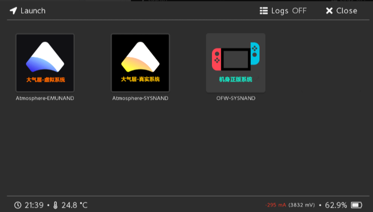 一台破解后的Switch,里面可能包含以下几种不同的系统环境。