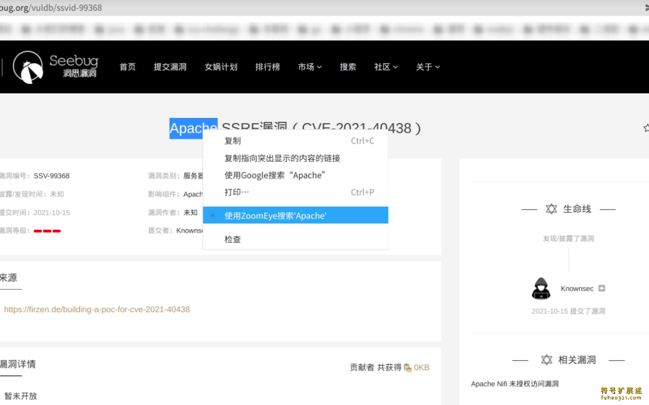 这款插件还有一个搜索功能。你可以选择网页上的文字或URL,右键点击后选择“使用ZoomEye进行搜索”。它会帮你在ZoomEye数据库中搜索相关内容,直接拿到更多信息,超级方便!对于做网络安全分析或者需要查询网站详情的用户来说,这个功能特别有用。