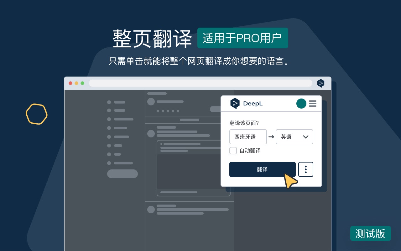 DeepL 翻译器:通过 DeepL Pro 订阅,可翻译文本、完整页面,甚至自动翻译网站,立即理解 30 多种语言并进行交流。DeepL 的术语表功能可为企业内外部沟通提供大规模定制服务,确保所有译文的一致性和准确性。海量语种任选,包括英语、德语、法语、西班牙语、意大利语、荷兰语、波兰语、俄语、葡萄牙语、日语等。
