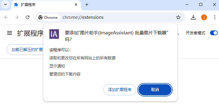 第一步:在本页面下载ImageAssistant插件的CRX文件。在下载时,请确认文件的ID是否为dbjbempljhcmhlfpfacalomonjpalpko。