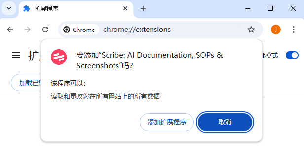 5、安装完成后,查看右上角是否出现 Scribe 的图标。如果图标出现,说明插件已经安装成功,可以使用了。