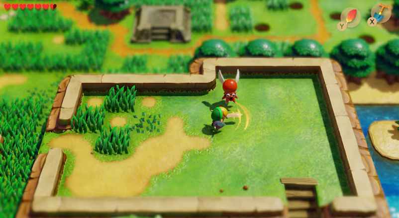 美术风格的彻底革新是本作最直观的亮点。游戏抛弃了原版Game Boy的黑白像素风,采用了充满童趣的黏土定格动画般的渲染效果。无论是林克圆润的造型,还是树木、房屋的质感,都像极了精致的微缩模型,营造出一个如梦似幻的玩具箱世界。