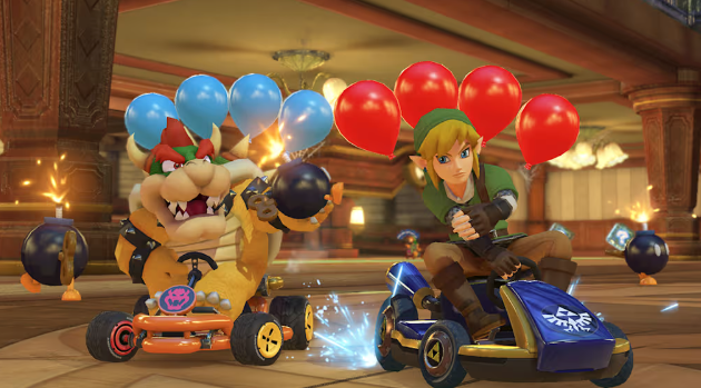 这是一款任天堂的派对赛车游戏,能用道具和朋友一起欢乐比赛。