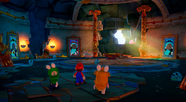 这是一款马里奥和育碧疯狂兔子联动的策略战棋游戏,你要组建小队在银河系各星球冒险,利用创新的回合制战斗解开谜团。