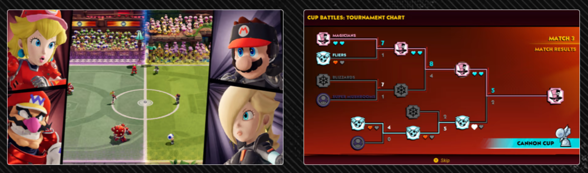 游戏的背景围绕着一场特殊的足球联赛展开,各个角色为了争夺“战斗联赛”的冠军奖杯齐聚一堂,不同角色所属的队伍有着各自的风格,比如库巴率领的队伍偏向力量型,而碧琪公主的队伍则更注重技巧和速度,这种角色差异化的设定,也让游戏的对战策略变得更加丰富。