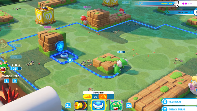 这是一款让马里奥和搞笑疯兔组队,在蘑菇王国里进行欢乐策略战斗的战棋游戏。