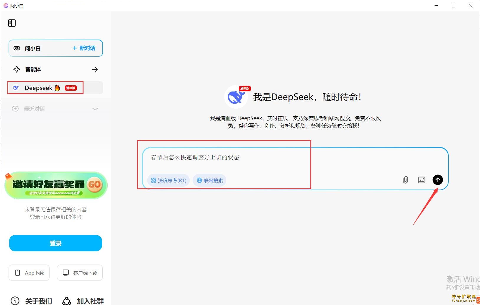 免费使用Deepseek R1满血版,支持联网搜索功能。