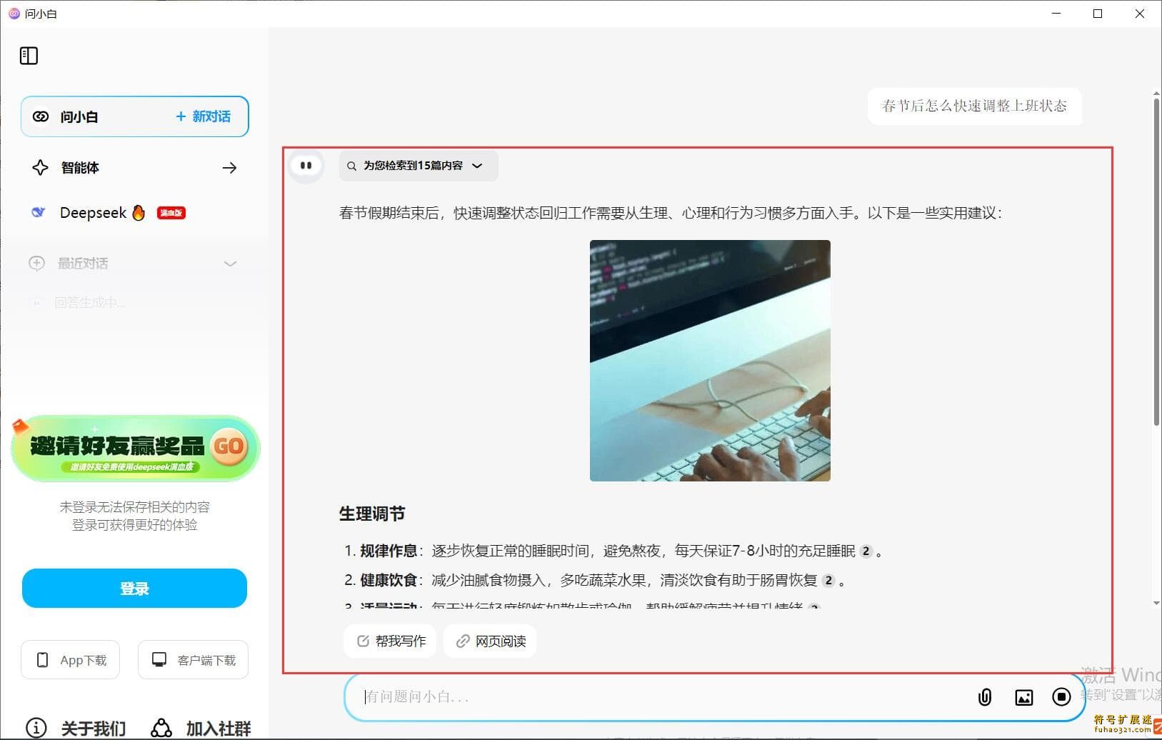 问小白电脑端是一款功能强大的AI智能助手软件,能够帮助用户高效处理文字创作和解决生活问题。它通过智能生成内容和个性化推荐,为用户提供全方位的支持,让创作和生活更加轻松便捷。