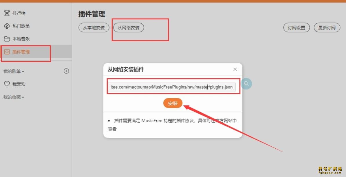 安装方法,打开musicfree(安卓和windows差不多),在左侧栏找到插件管理-进去后从网络安装,填入以上地址即可。
