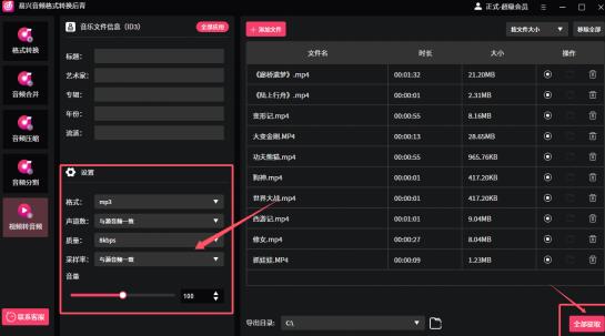 第三步:点击“全部提取”按钮,将视频中的音频提取出来。
