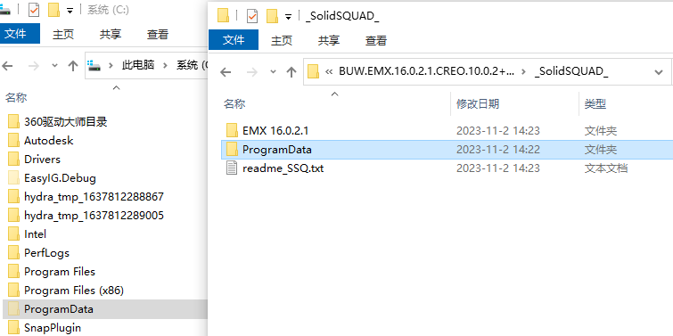 第2步:将"ProgramData"文件夹复制到C盘并覆盖原有文件。