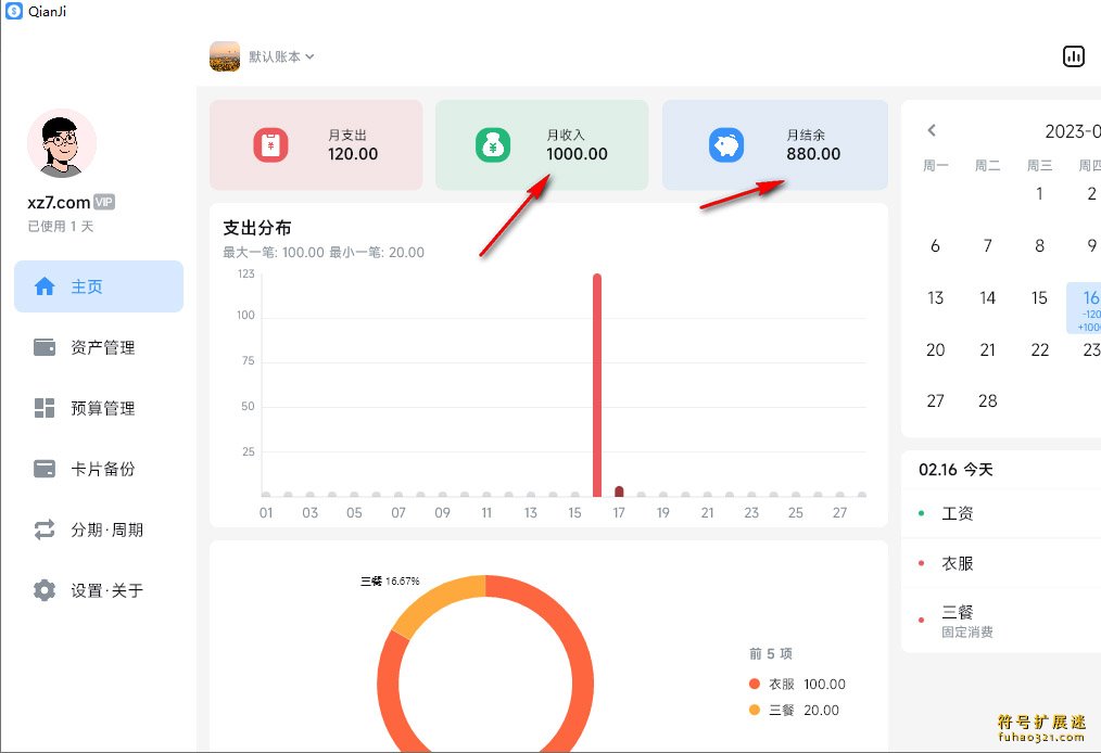 4、自动生成月账单,帮助用户掌握当月消费情况。