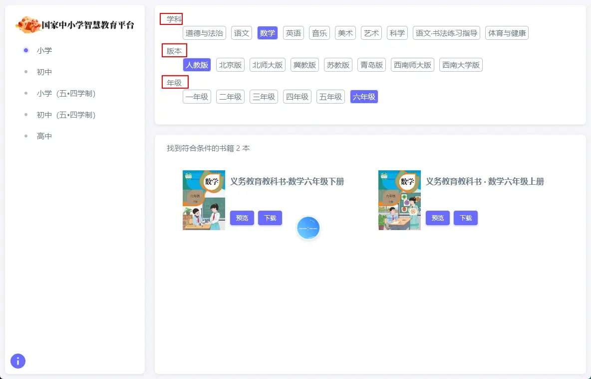 第3步:点击预览按钮查看教材内容,然后点击下载按钮直接获取电子教材。