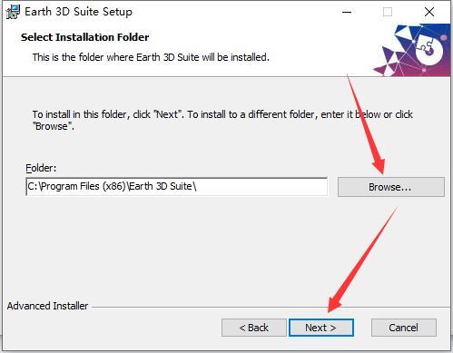第2步:点击browse按钮,选择软件的安装目录。默认路径为C:\Program Files (x86)\Earth 3D Suite\。