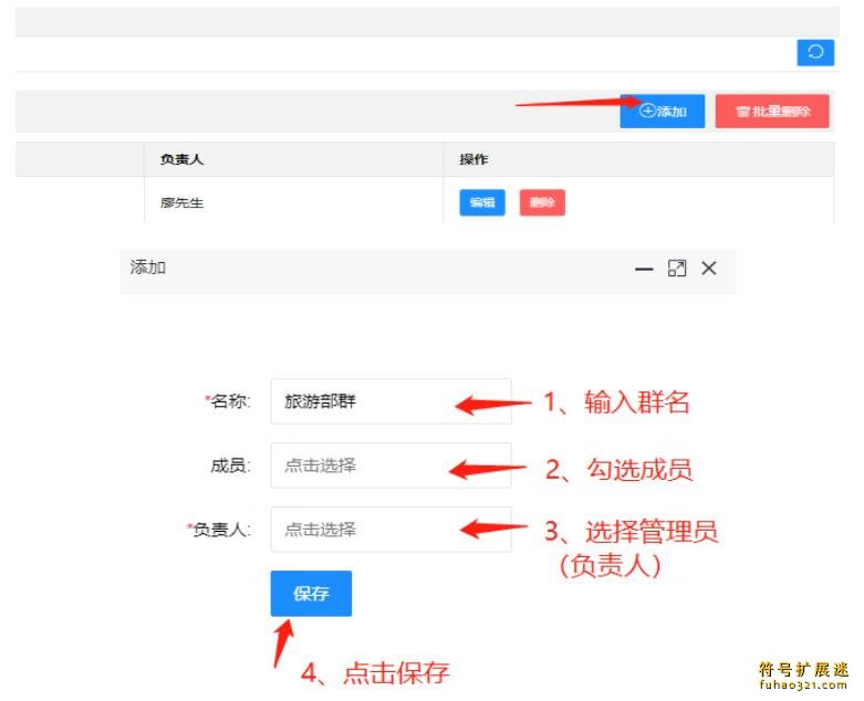 5. 群组管理:创建不同群组,并设置对应的审批人。