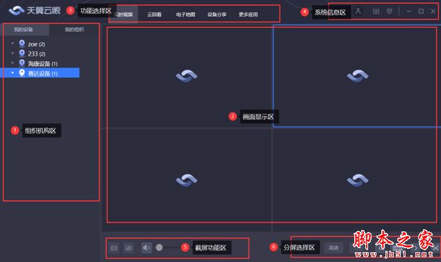 实时监控:支持多种预览模式,提供1、4、5、6、8、9、16及全屏布局,并可抓图。